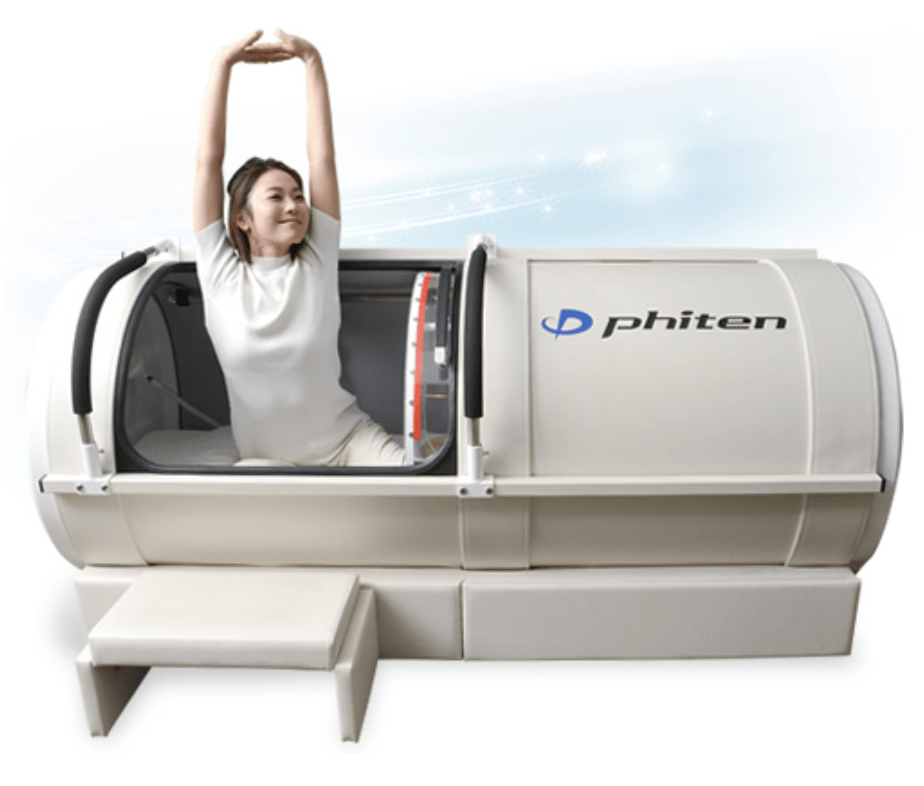 Phiten O2 is a healthy atmospheric pressure air chamber that uses atmospheric air. The inside of the capsule is raised to 1.1 to 1.3 atm, creating an environment where oxygen can be easily taken into the body. In addition, Phiten’s original aqua titanium is used for the body and mattress of the O2 capsule. It creates a comfortable space both physically and mentally and leads the body to its original relaxed state.